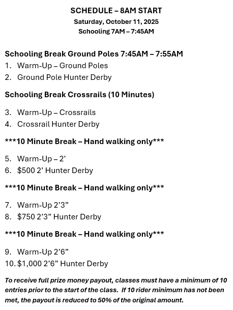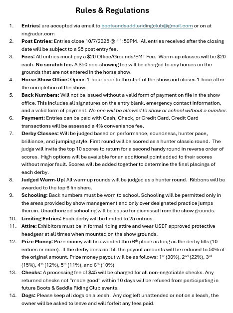 BASRC Show Prize List & Program Prize List Our horse shows are more than just exciting competitions – they are our key fundraisers, helping us enhance and maintain our beautiful preserved farmland.